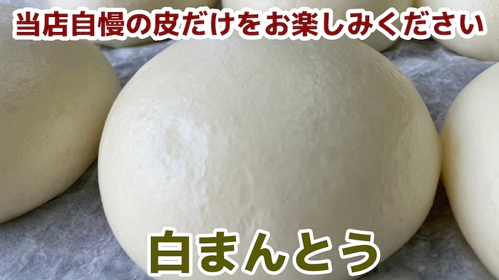 「肉まんの皮がおいしい」と言われることも多い当店の隠れた人気商品です。肉まんの皮だけですが、ほんのり甘く、ふわふわの生地は小さなお子様から大人まで多くの方にご愛顧いただいております。